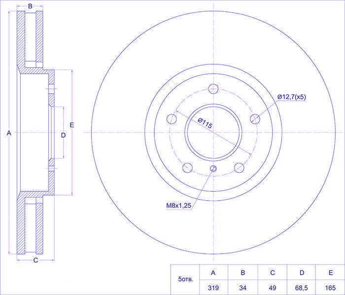 Диск тормозной /передний /TI-GUAR для INFINITI FX35, 45 2005-; FX50 2005-2008 VQ35 VK45, M35 45, 2WD /4WD, 2005-; 319/34мм; TG-40206-CL70A PD3212301S 3212301 0986479T32 40206CL70A